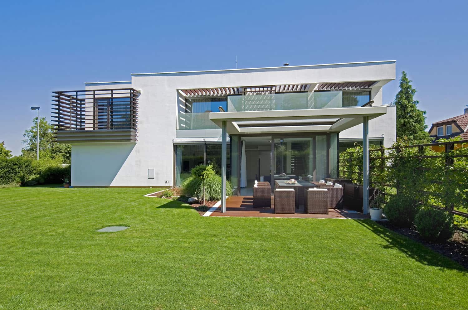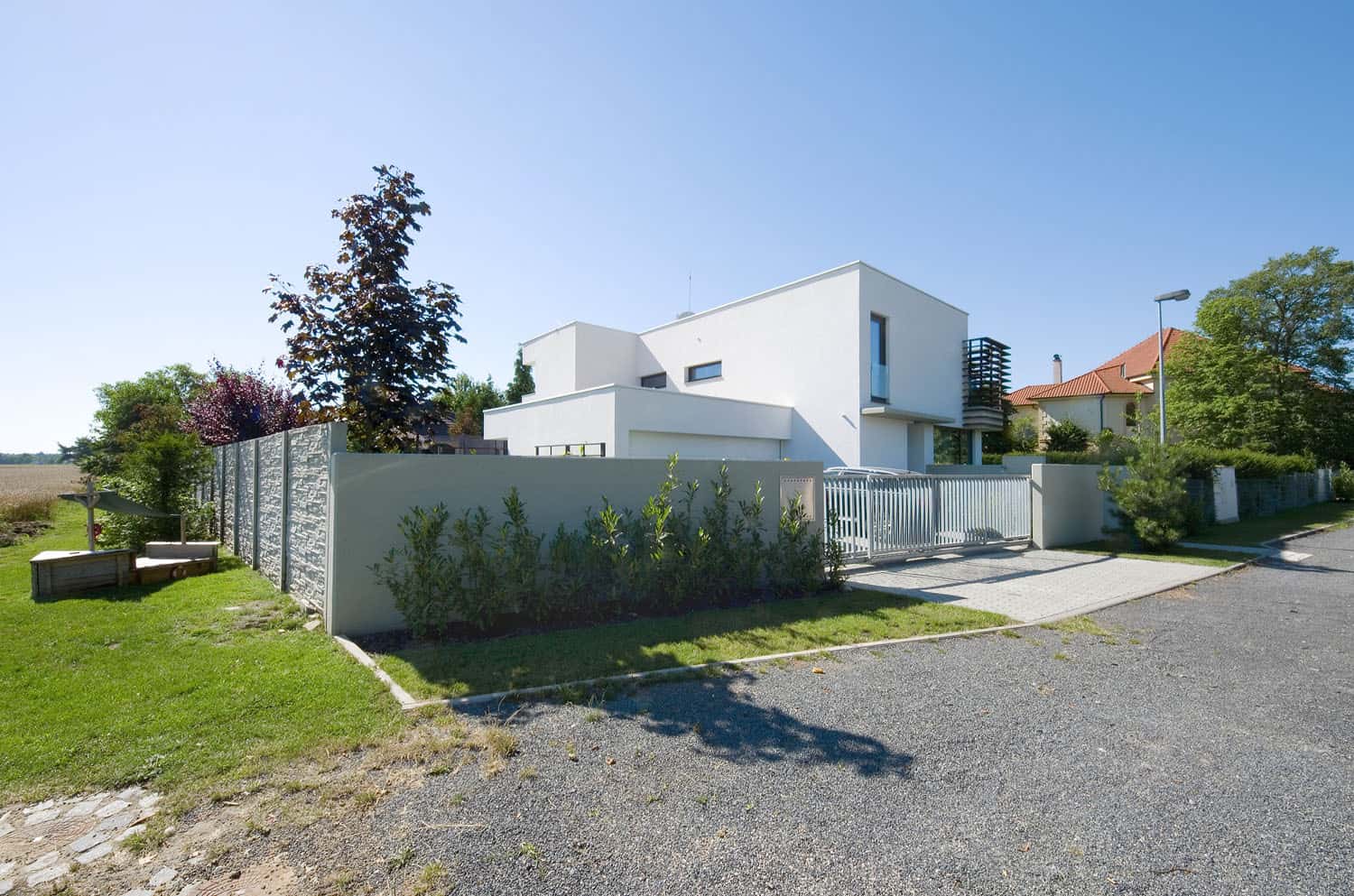 Městská část Praha 9-Klánovice patří již tradičně mezi oblíbená místa luxusního rezidenčního bydlení. Moderní rodinný dům jako by stál na okraji obce odjakživa.
