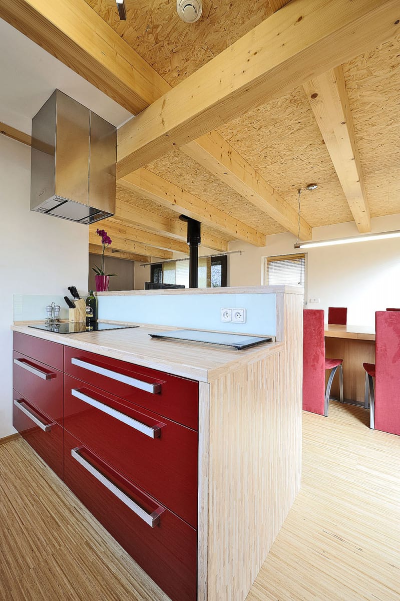 Dům, postavený na okraji větší obce na východ od Prahy, oplývá všemi přednostmi moderních dřevostaveb. Přidanou hodnotu k přijatelné pořizovací ceně, nízkým provozním nákladům a komfortnímu bydlení, tvoří výrazná, originální architektura.