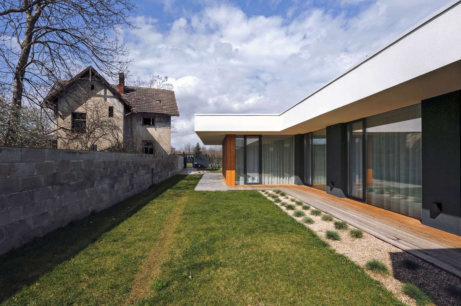 Majitelka poměrně netradičního pozemku v pražských Horních Počernicích požadovala v zadání především hodně zeleně a dostatek soukromí. Menší ryze praktický dům měl s rodinou přirozeně stárnout a stát se nedílnou součástí původní zástavby.