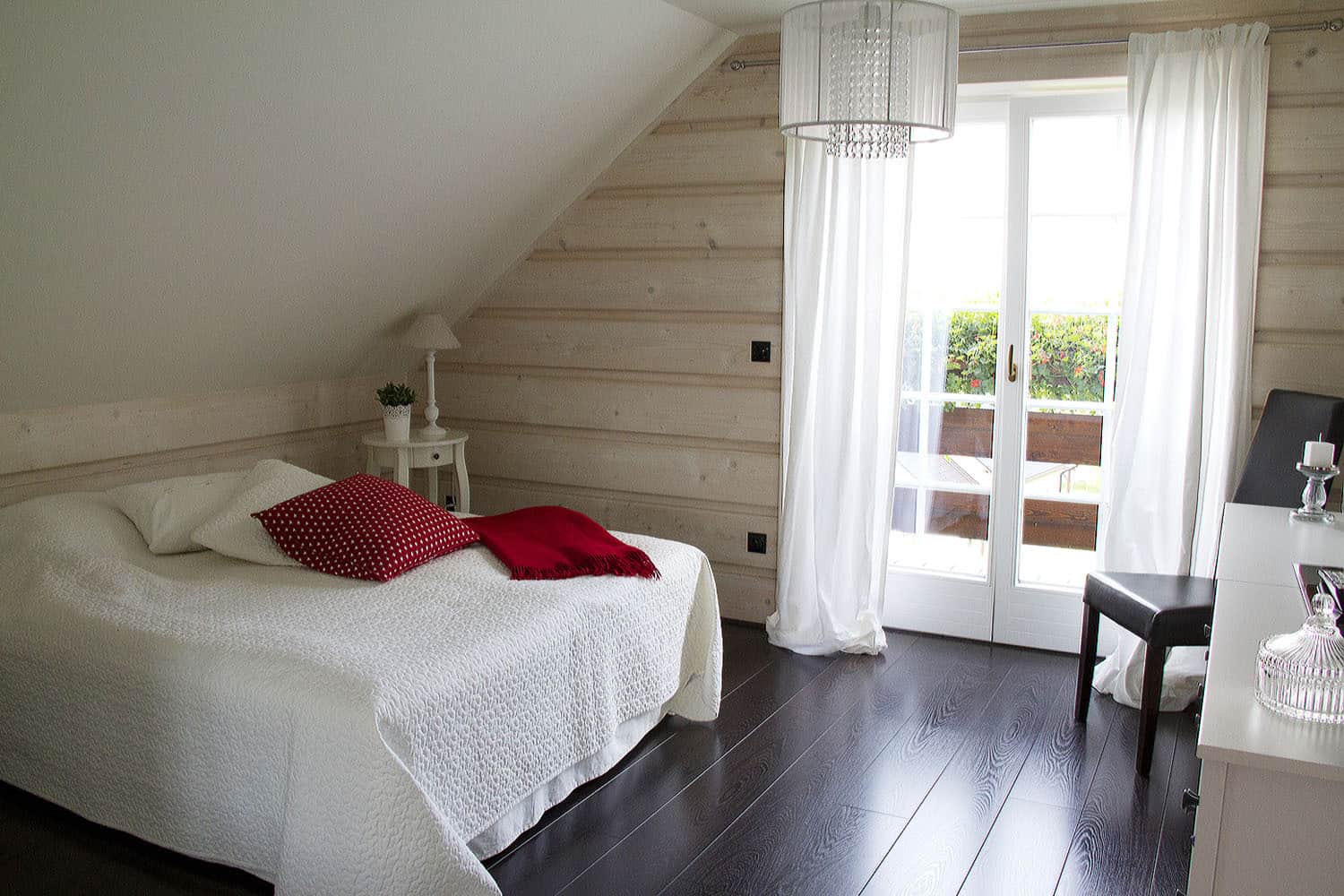 Slunný jižní svah, úchvatný výhled na ladné křivky hřebenů Beskyd, klidné místo téměř bez sousedů, do města autem pár minut – šance, které se neopakují, nelze odmítnout. Pobyt ve Skandinávii a potřeba bydlet co nejrychleji ve vlastním směřovaly k jasné volbě: manželé se rozhodli pro montovanou dřevostavbu v podobě moderního srubu. Inspirovali se u finských dodavatelů, dispozici domu si však navrhli sami a realizaci zadali místní stavební firmě, která se na tento typ staveb zaměřuje a může se opřít o dlouholeté zkušenosti.