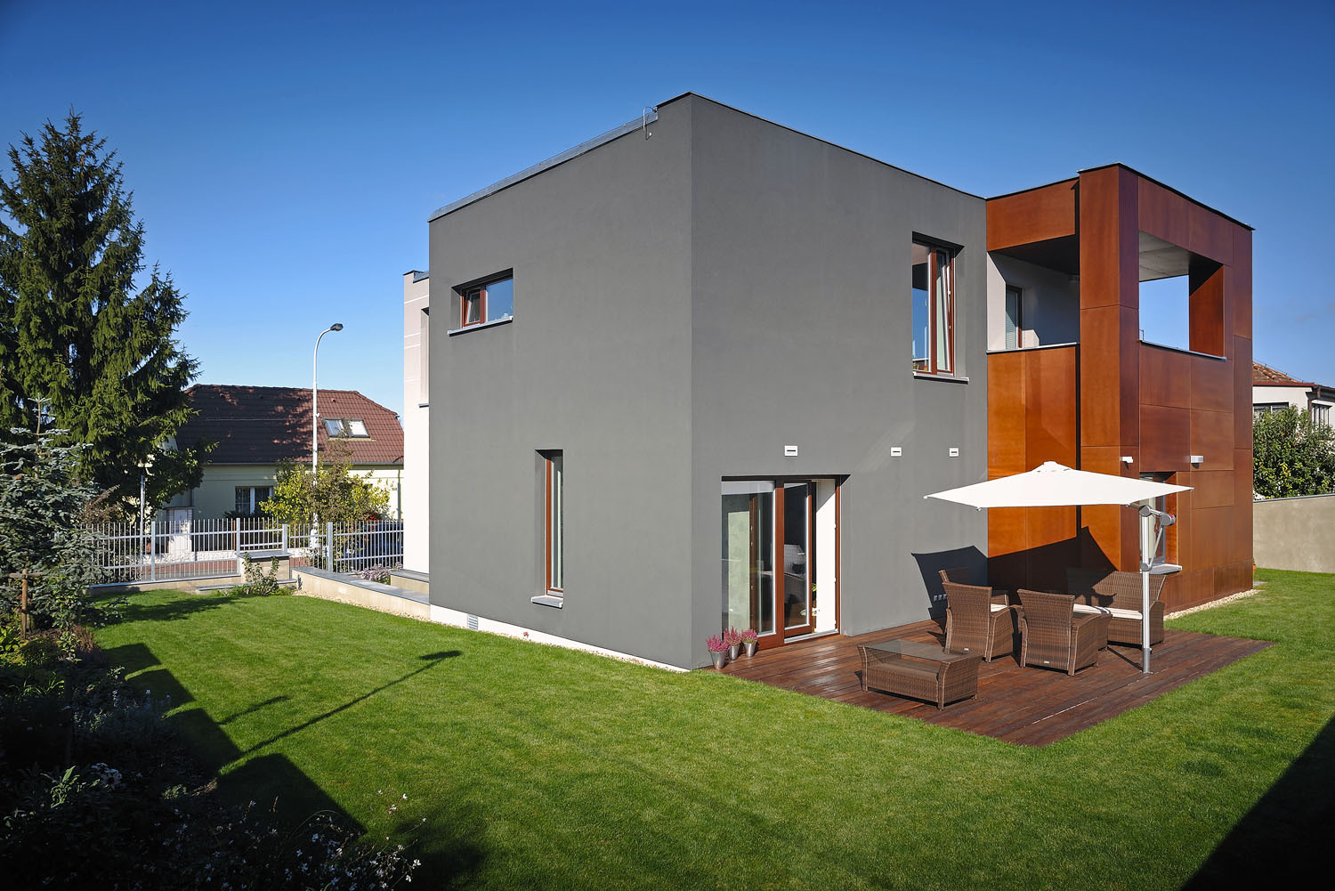 Prvorepublikový domek v malé obci, která dnes již splynula s hlavním městem, se novým majitelům líbil hlavně pro svou hezkou polohu v klidné čtvrti. Starší zástavba se vzrostlou zelení a již vybudovaným zázemím nabízela kultivované a stabilizované prostředí bez rizika, že se děti budou vracet ze školy po polní cestě nebo že v sousedství vyroste obří nákupní centrum.