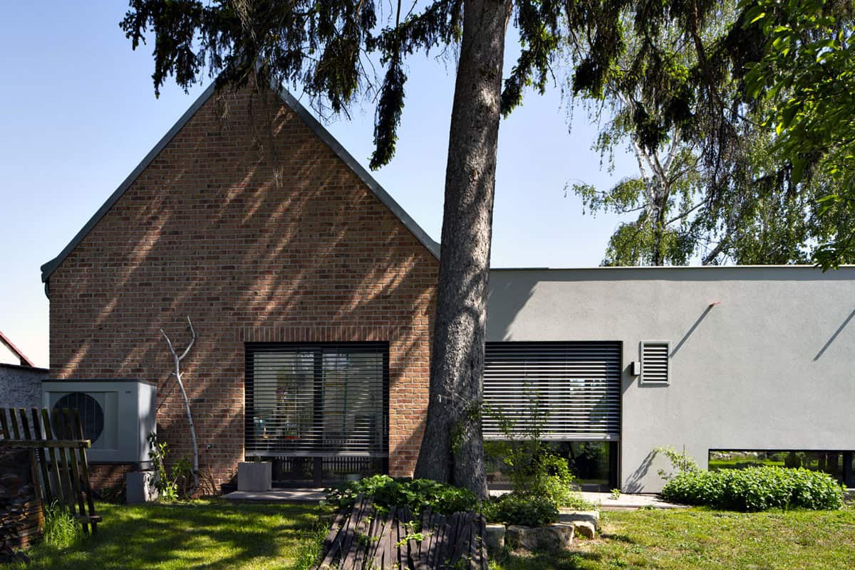 Autor návrhu zvolil tradiční formu stavby – dva odsazené objekty mají sedlové střechy, fasádu z cihel a se světlou omítkou podobně jako u sousedů. Svým uspořádáním může dům připomínat staré statky, přesto je ryze současný.
