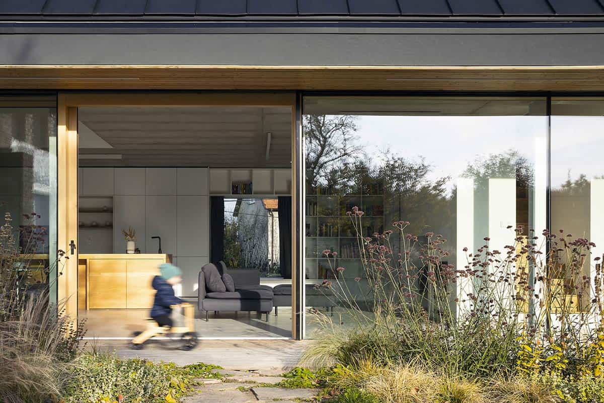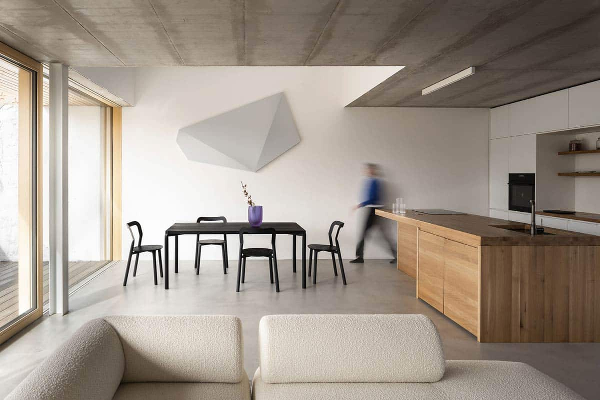 „Manželka odtud pochází, máme tu příbuzné i kamarády. Směrem k Rokytné je les, na druhé straně údolí řeky Jihlavky. Jsou tu tedy hned dvě krásná říční údolí. A na Rokytnou navazuje obora, ideální místo pro běhání. Ukázalo se také, že cesty do ateliéru v Brně nejsou tak dlouhé, jak se zprvu zdálo; navíc tam nemusím být každý den. Dnes bych v projektu některé věci řešil odvážněji, například jsem zvažoval střechu a fasádu z polykarbonátových desek či hydroizolačních PVC fólií. Teď jsme ale spokojeni. Navíc máme pocit, že se nám podařilo prezentovat bydlení na venkově jako skvělou variantu. Vůbec nás netěší, že se vesnice vylidňují a mnohé domy jsou prázdné.“
