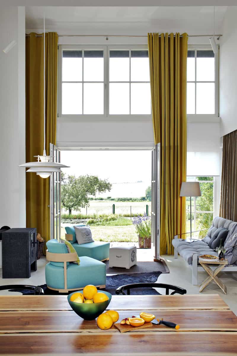 Kromě obývací místnosti je v prvním nadzemním podlaží i kuchyň, zádveří a pokoj a koupelna pro hosty. V patře se na 45 m2 nachází otevřená galerie, ložnice a dětský pokoj a druhá koupelna. Vchod do domu je orientován na východ, hlavní obytná místnost má velkou prosklenou stěnu na jih, koupelny jsou orientovány na sever. Krédem domu je propojení interiéru s exteriérem. Jeho naplnění napomáhají výrazné průhledy z oken i pravidelný pobyt na terase – odehrávají se tu snídaně, obědy i večeře.