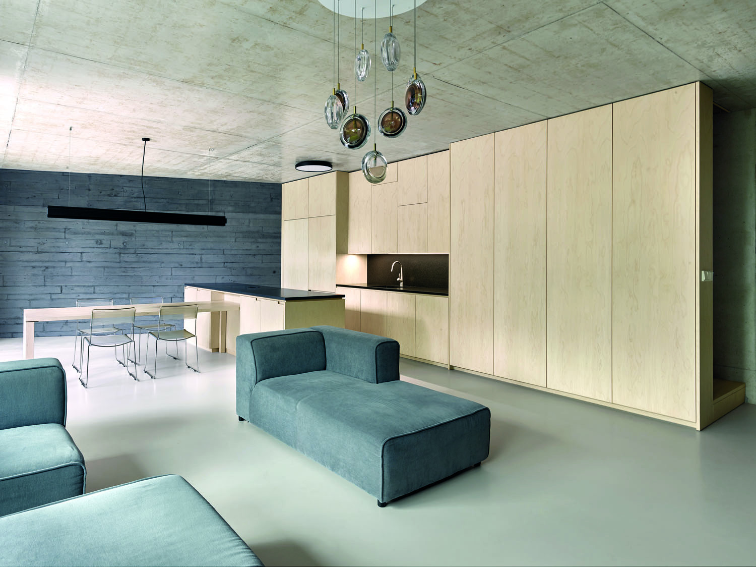 Autoři návrhu architekti Ján Stempel a Jan Jakub Tesař od začátku věděli, že klienti jsou o betonu pro svůj dům přesvědčeni. Přesto chvíli uvažovali o tom, že by pro dominantní tmavé zdi použili kámen, ale nakonec se všichni rozhodli pro experiment: „Beton nevyplynul z diskuse – tento materiál byl jak v exteriéru, tak v interiéru jednoznačným požadavkem a prioritou klientů. Navíc se ukázalo, že jsou odvážní, experimentu se nebáli. Většinou se stává, že zadání nebývá tak striktní a během návrhu se pak zděný dům může proměnit třeba na dřevostavbu. Tohle byl úplně jiný zážitek. Pro nás se tak otevřela příležitost využít jedinečných vlastností a možností betonu z hlediska hmoty, struktury i barevnosti. Antracitový beton je v celé své konzistenci tmavý, navíc hodně záleželo na tom, jaká prkna použijeme pro bednění se správnou texturou. Vybrali jsme hrubá, pak se odléval vzorek, ten se nám všem líbil. Beton máme jako materiál rádi, drobné nedokonalosti zvýrazní jeho krásu; je to podobné, jako když se vytváří hornina nebo kámen. Nedávno jsem v televizi sledoval pořad, kdy švýcarského architekta Petera Zumthora navštívil Kenneth Frampton – povídají si ve vlastním domě Petera Zumthora, kde jsou na stěnách kaverny a mapy, a přitom je to kouzelné, jedinečné, k betonu to patří,“ uvádí Jan Jakub Tesař.