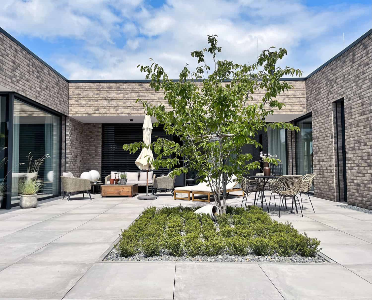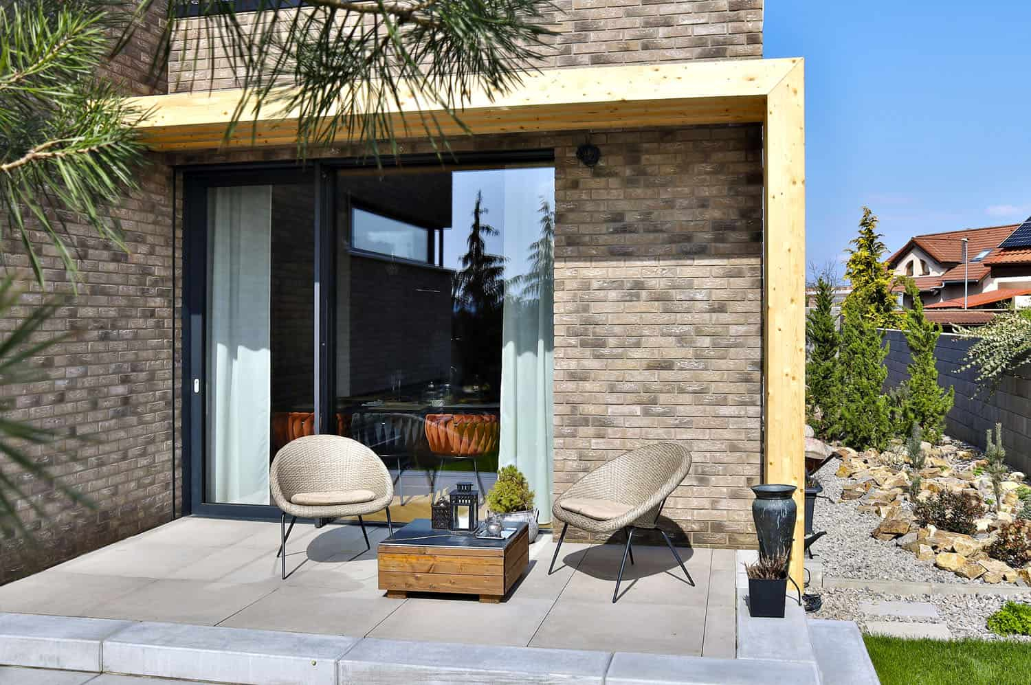 Sedávala jsem uprostřed pozemku ráno, v poledne i večer. Sledovala jsem slunce, stíny. Přála jsem si mít kuchyň na východní straně, jídelní stůl také s propojením na terasu, která ráno doslova vybízí k vypití kávy či čaje a je zalitá sluncem a odpoledne poskytne stín. Pak už jsem tam chodívala sedávat s papírem a tužkou a myšlenky zrozené v hlavě jsem přenášela na papír.
