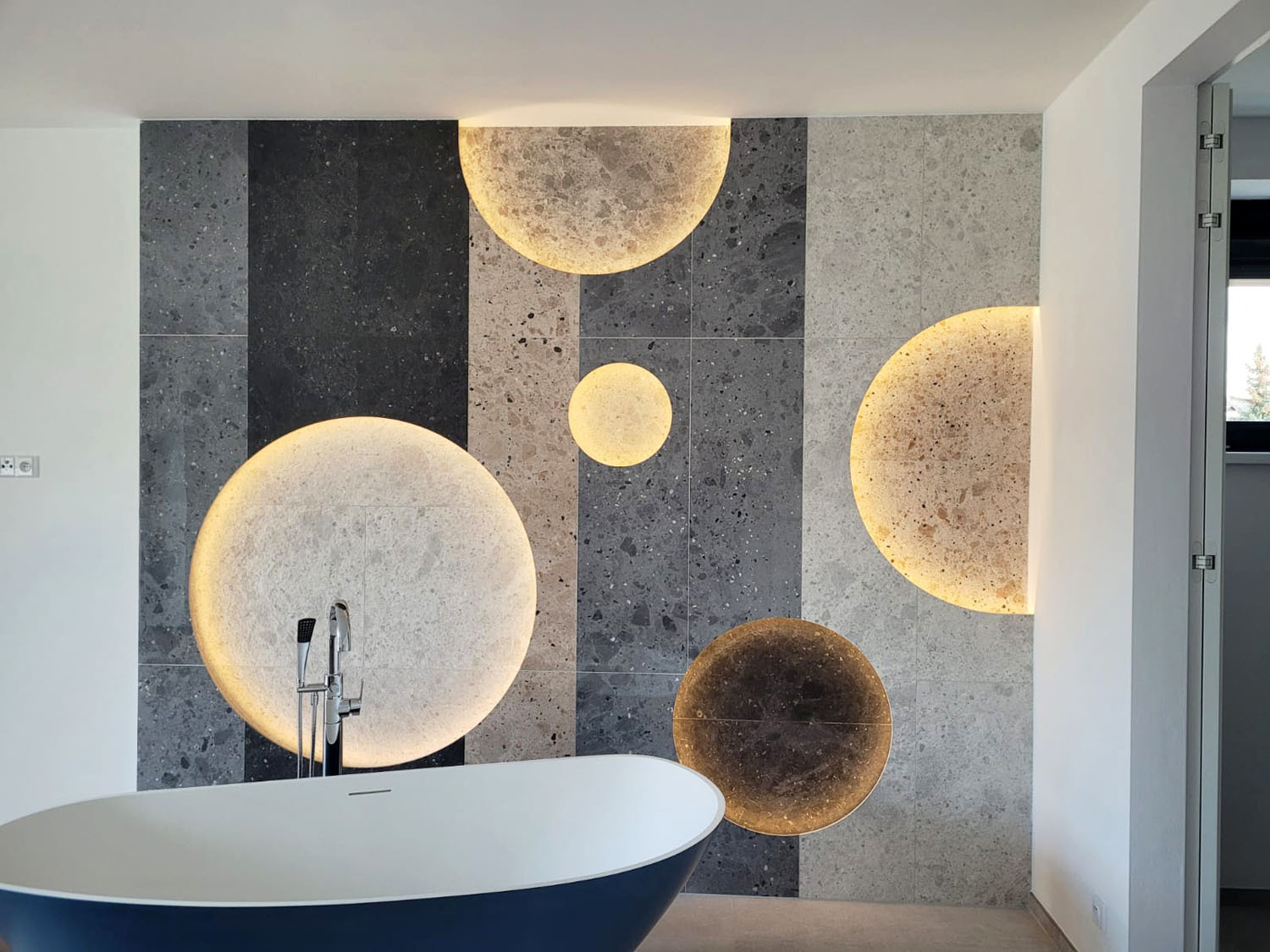 Architektka neměla úplně jednoduchý úkol, k domu se v podstatě dostala autorsky až jako třetí v řadě. Řešila změnu stavby před dokončením, kdy pozemek získali noví majitelé, se kterými již dříve spolupracovala, a v návrhu proto dostala plnou důvěru. „Musela jsem zachovat formu tak, jak byla, výšku a objekty, jak jsou. Přepracovávali jsme dispozice na míru investorovi, úprav bylo mnoho. Jednak jsme řešili bezbariérovost, umístili dovnitř dispozice výtah. V interiéru investor stál o velké prostorné ložnice, u jedné jsme rušili šatnu, nahradila ji samostatně stojící vana. Pracovali jsme na návaznosti místností na okolní terén a terasy, ze všech obytných místností je nyní možný výstup na terasy a dále do zahrady.“