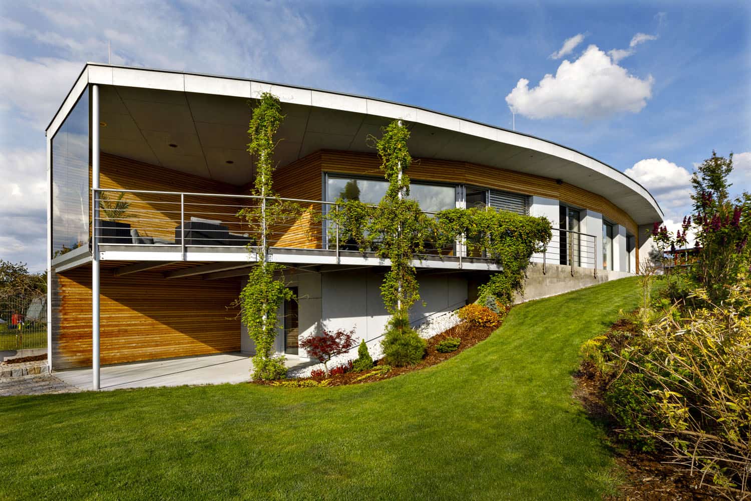Na začátku obvykle bývá přání postavit si dům, teprve pak se pro jeho realizaci hledá vhodný pozemek. U jedné jihočeské rodiny to ale bylo opačně. Když se v jejich sousedství začala prodávat parcela na kopci s neopakovatelnými výhledy, rozhodli se, že si na ní postaví nový dům. Vysněnými výhledy se dnes kochají díky „zelenému“ cihlovému domu s rozsáhlými prosklenými plochami. Do oblouku prohnutá křivka celé jižní strany je vtahuje do okolní krajiny a skýtá jim výhledy na tři světové strany.