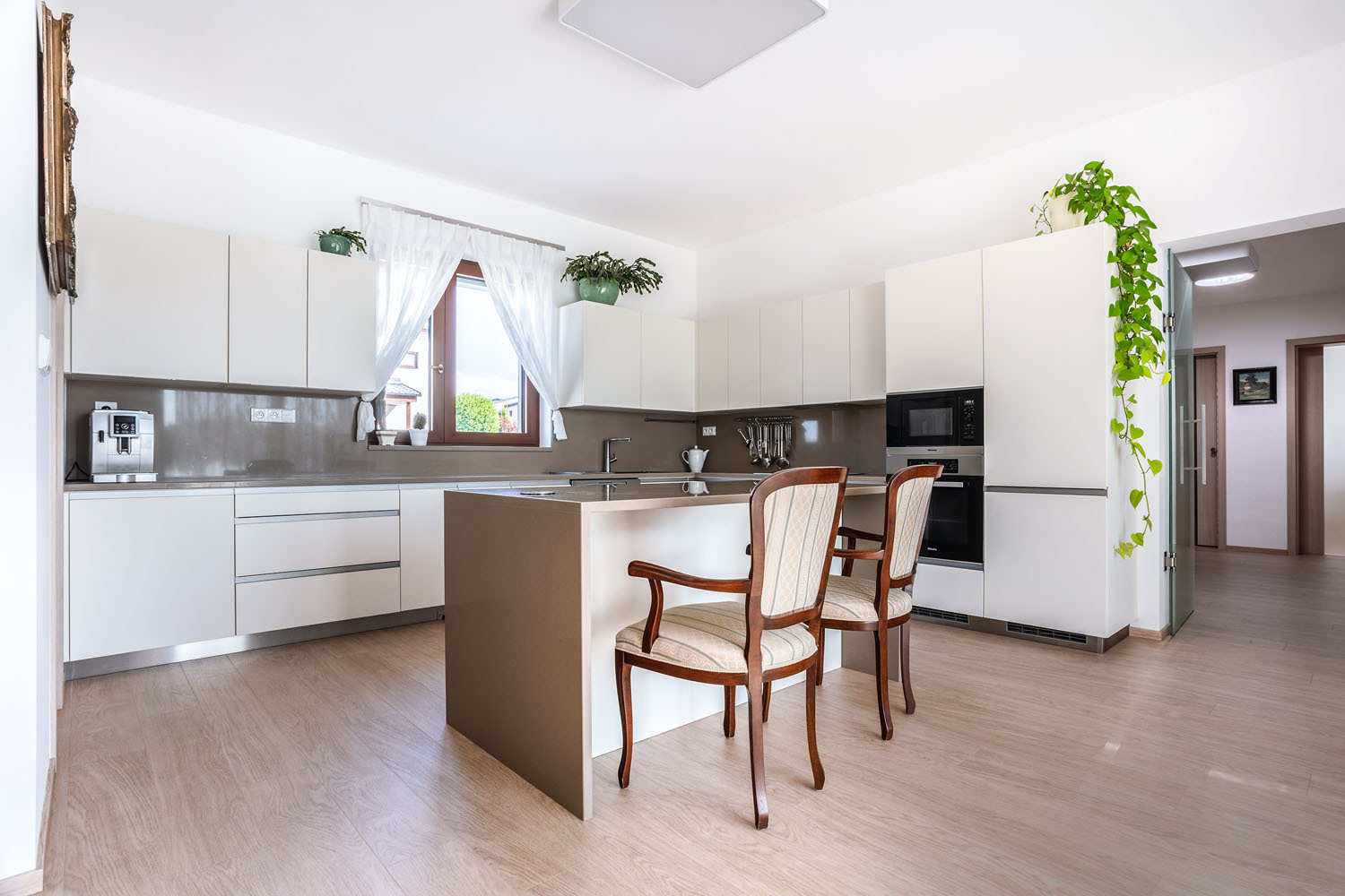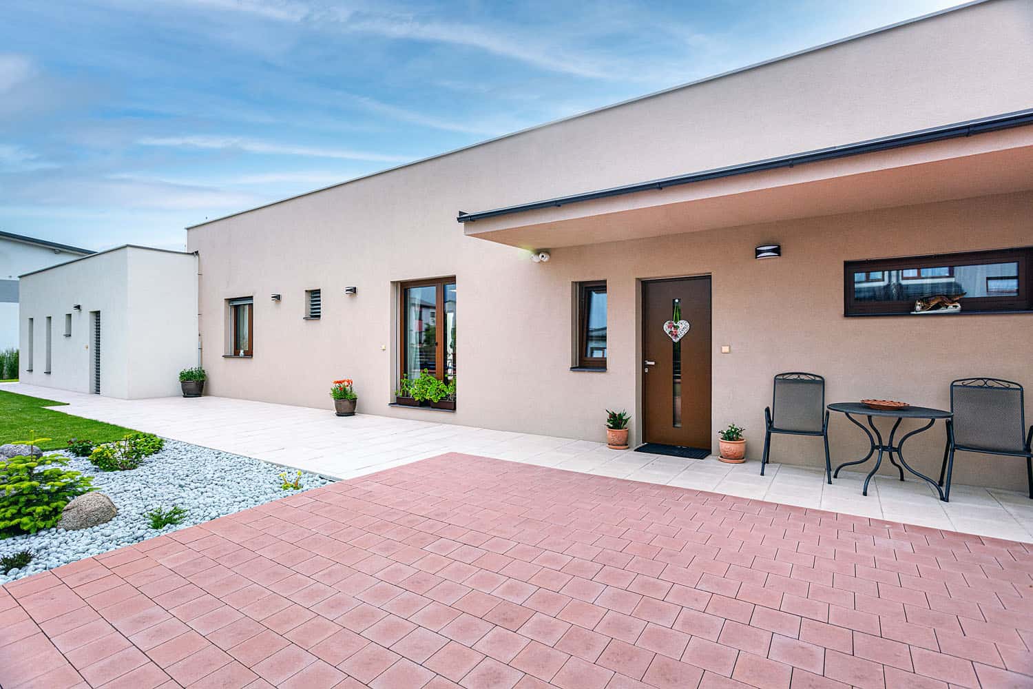 Manželská dvojice se rozhodla opustit svůj starší rodinný dům a postavit si pohodlnější a modernější, který poskytne hodně prostoru, hodně světla, energeticky úsporný provoz a bezbariérové uspořádání. Vybírali mezi moderními bungalovy a zalíbil se jim typový dům LIME od společnosti Hoffmann z Chrudimi. „Tento dům nám vyhovoval velikostí i dispozičním řešením a také odpovídal orientaci našeho pozemku směrem na západ. Líbil se nám moderní design a velkoryse řešený společný obývací prostor do L. Firma nám ve všem vyšla vstříc a ve spolupráci s Ing. Martinou Šotolovou byl projekt upraven podle našich představ,“ říkají majitelé domu.