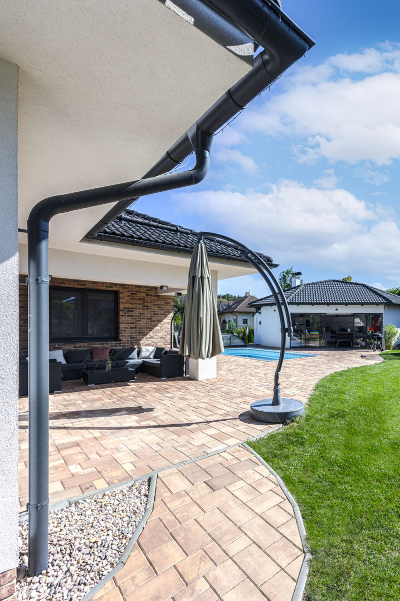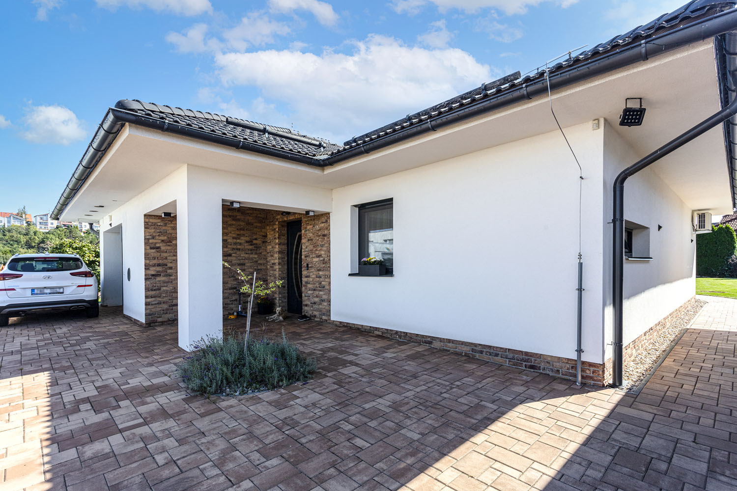 Vybrali si rovinatý pozemek za městem, v rodící se nové zástavbě.“ Když jsme začali stavět, měli jsme jen dva sousedy, dnes je tu celá nová čtvrť rodinných domů. Líbí se nám, že je tu klid a přitom jsme nedaleko centra města, škola, obchody, poliklinika a další městské vybavení jsou v dosahu autem i pěšky,“ vysvětlují svoji volbu. Po velmi dobrých zkušenostech s první stavbou se rozhodli opět využít stavební systém Velox.