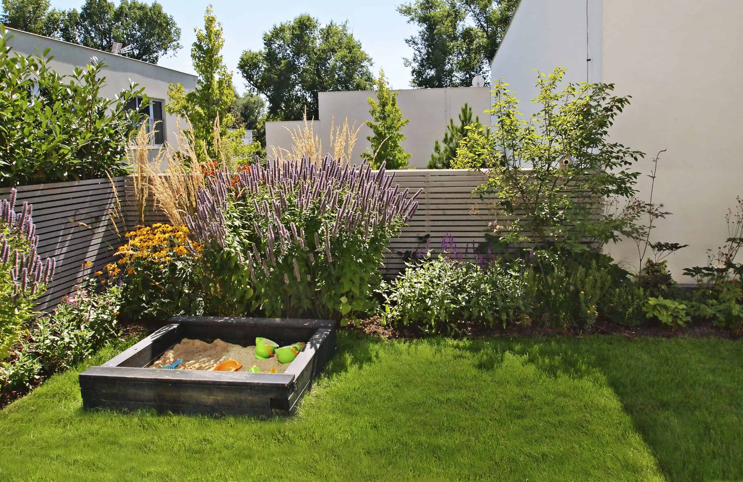 Dobrým příkladem může být projekt zahradní architektky Kateřiny Pospíšilové. Tato zahrada v blízkém okolí Prahy o rozloze zhruba 70 metrů čtverečních patří k řadovému domu a její majitelé jsou na ni právem pyšní. Pozemek má obdélníkový tvar, z východní a jižní strany na něj navazují další zahrady, z jižní strany je ohraničen asi 150 cm vysokou zdí z plotových betonových tvárnic a v druhé polovině pět metrů vysokou zdí sousedního domu.