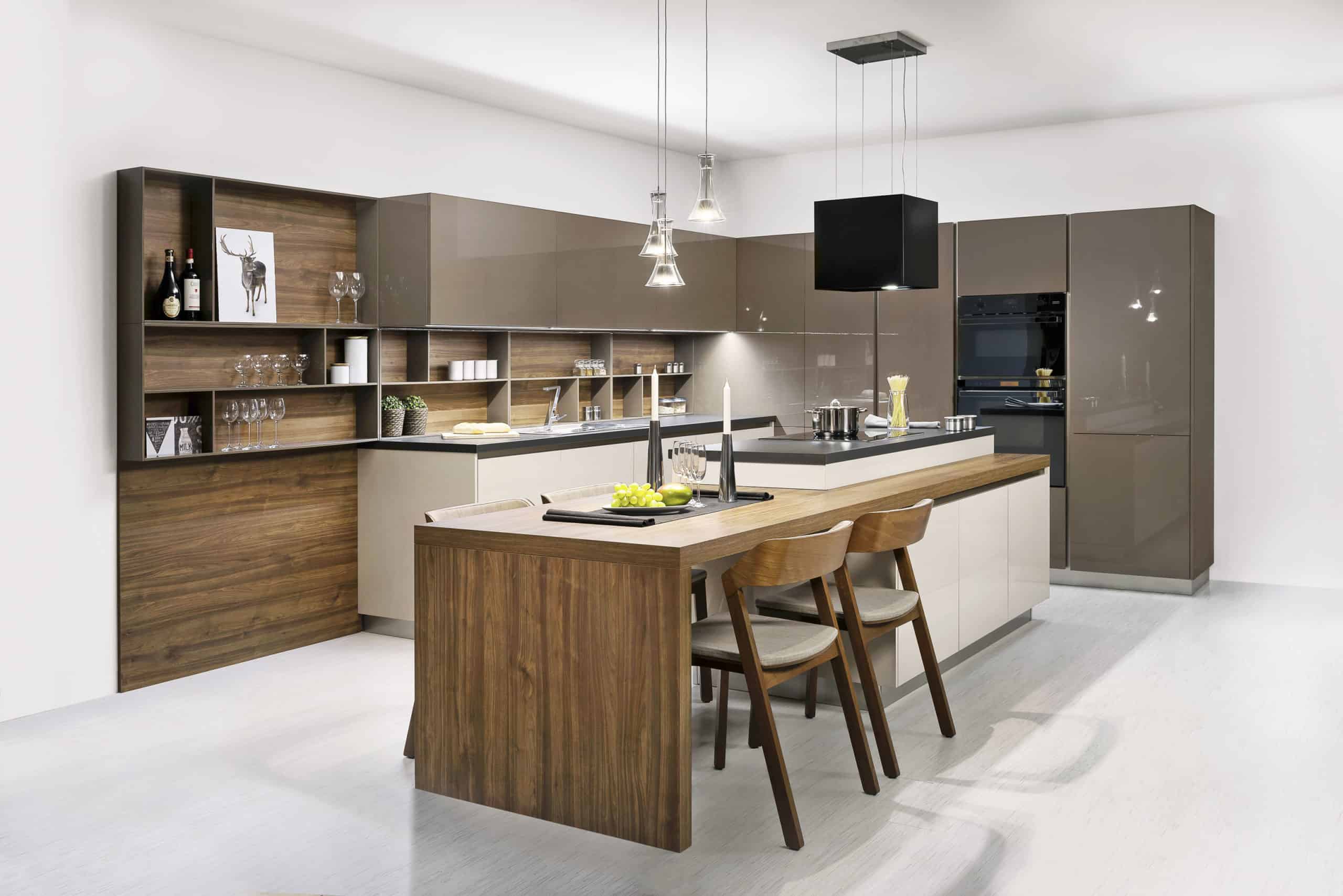 Kuchyňská kolekce Trend Elite využívá dokonce tři různé povrchy, což je velmi nevšední a originální. Dva odstíny laku se zde působivě prolínají s dřevodekorem (WWW. HANAKTREND. CZ)