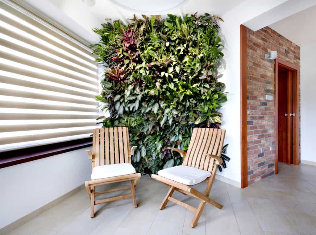 Vertikální zahrady mají kromě estetické funkce i efekt tepelné izolace, zlepšování klimatu odpařováním vody i chlazení v letních měsících. Proto jsou tak často využívány v odpočinkových místnostech domu