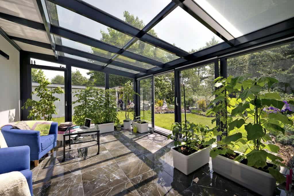 Celoskleněné stěny dnes nahrazují celé obvodové stěny. Mohou být zabudované „napevno“, v kombinaci s posuvnými plochami, s vsazenými otočnými dveřmi apod. Zimní zahrady se mohou stát přímou součástí obývacích pokojů a dalších obytných místností či střechami nad vnitřním bazénem. K vytvoření klimatické pohody v obytné zimní zahradě dnes mohou přispívat i nejrůznější čidla, počítačové programy, programovací a dálkově ovládaná zařízení. V každém případě jde vždy o velmi atraktivní a uživatelsky příjemnou součást bydlení v rodinném domě.